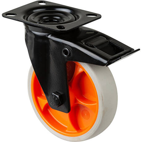 Transportní kolo v otočné vidlici s brzdou s uchycením na plotnu na čtyři šrouby