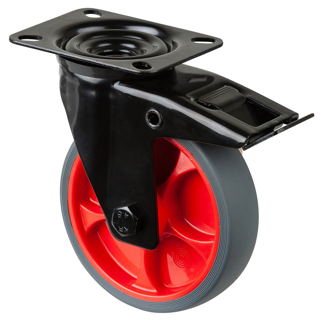 Transportní kolo v otočné vidlici s brzdou s uchycením na plotnu na čtyři šrouby
