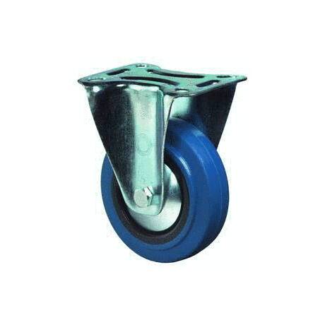 vidlice: ocelový pozinkovaný plech s dvojitým kuličkovým věncem, kolo: plastové s modrou nešpinící gumou na jehlovém ložisku
